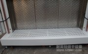 外形材質采用2mm厚冷板折彎而成,表面高溫靜電噴塑(非普通油漆)耐腐蝕,防生銹,外形尺寸:寬2.6米,深0.85米,高1.3米,雙開門,配加強型鍍鉻方鋼門鎖,拉手,鍍鉻加強型合頁,烤箱頂箱開有6個∮250孔.